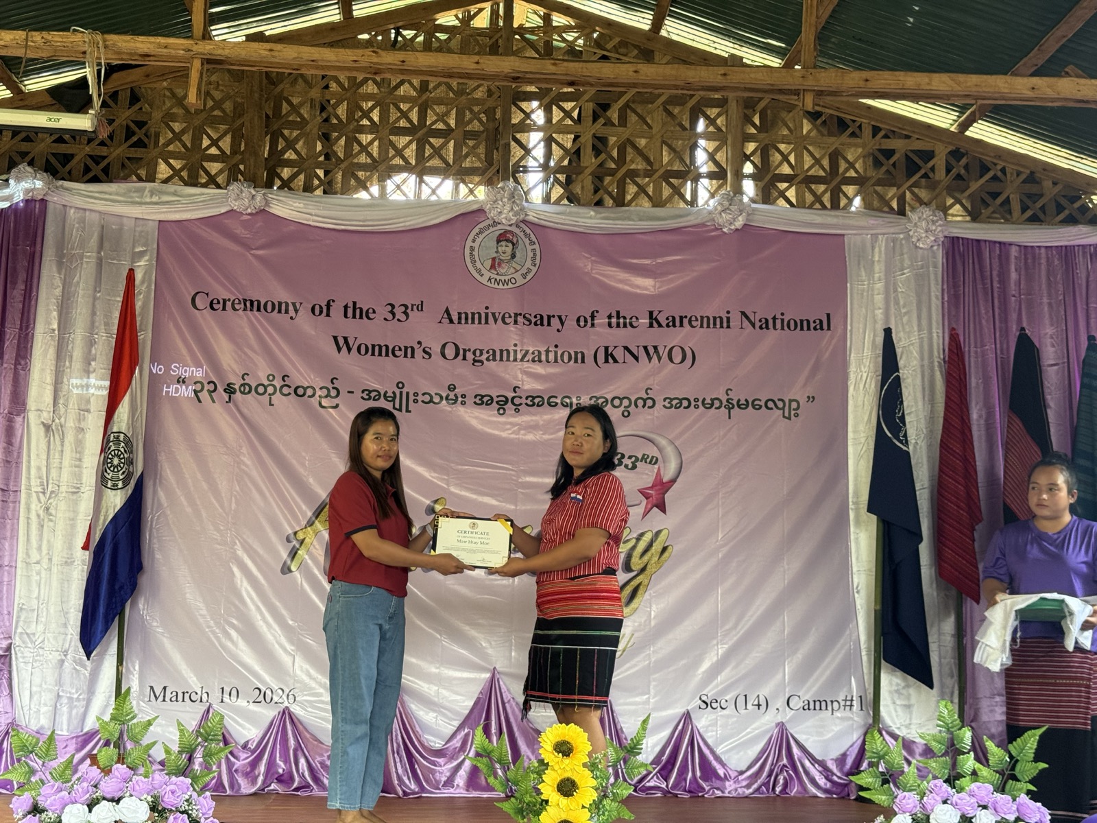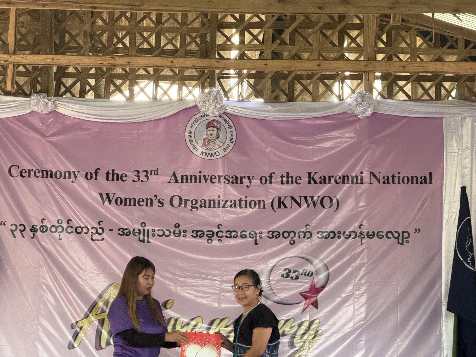 ယနေ့ကျရောက်သော မတ်လ (၁၀)ရက်နေ့သည် ကရင်နီအမျိုးသမီးအစည်းအရုံး၏ (၃၃) နှစ်ပြည့် နှစ်ပတ်လည်နေ့ အခမ်းအနားအား ထိုင်း-ကရင်နီနယ်စပ် ၊ ဘန့်မိုင်နန်းဆွယ် ဒုက္ခသည် စခန်း ၌ ကျင်းပပြုလုပ်ခဲ့ပါသည်။